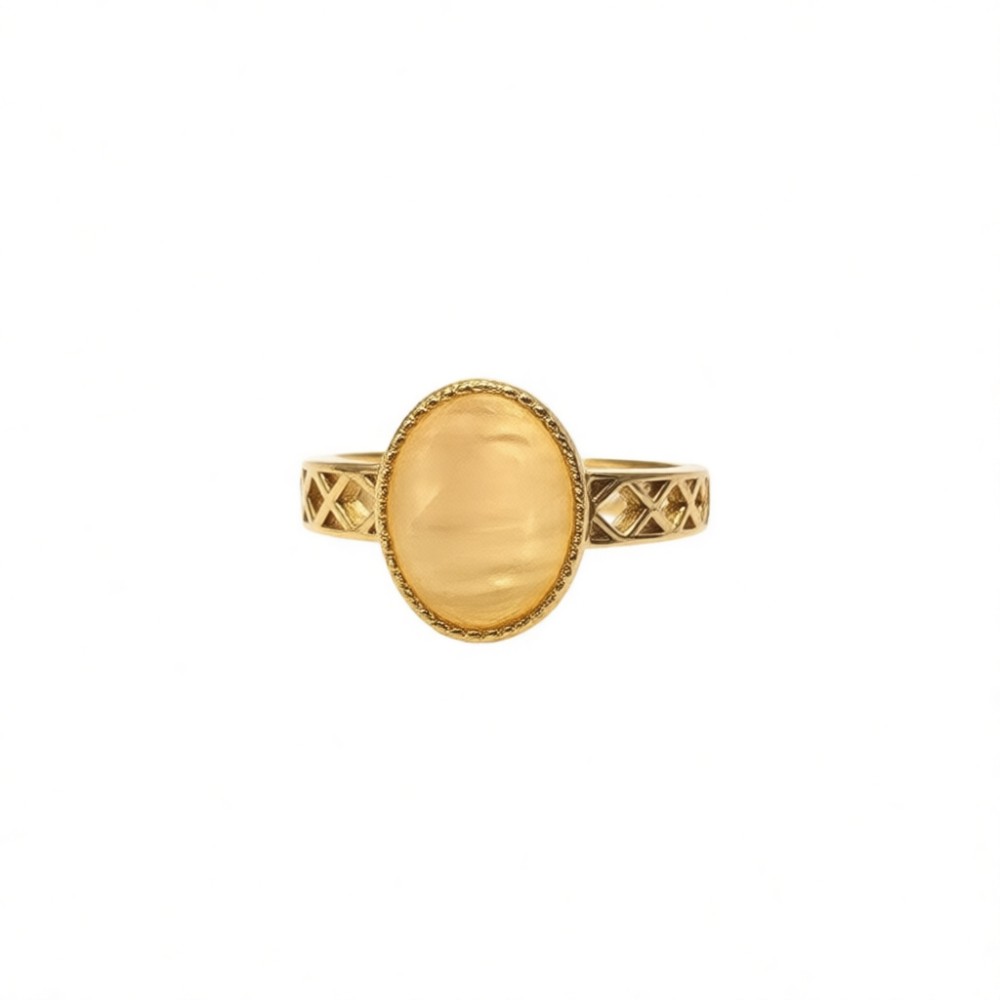 Vintage Oval Natural Stone Open Statement Ring For Women,Gold-Toned Adjustable Expandable Ring