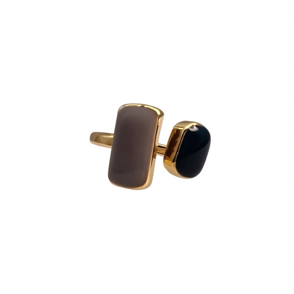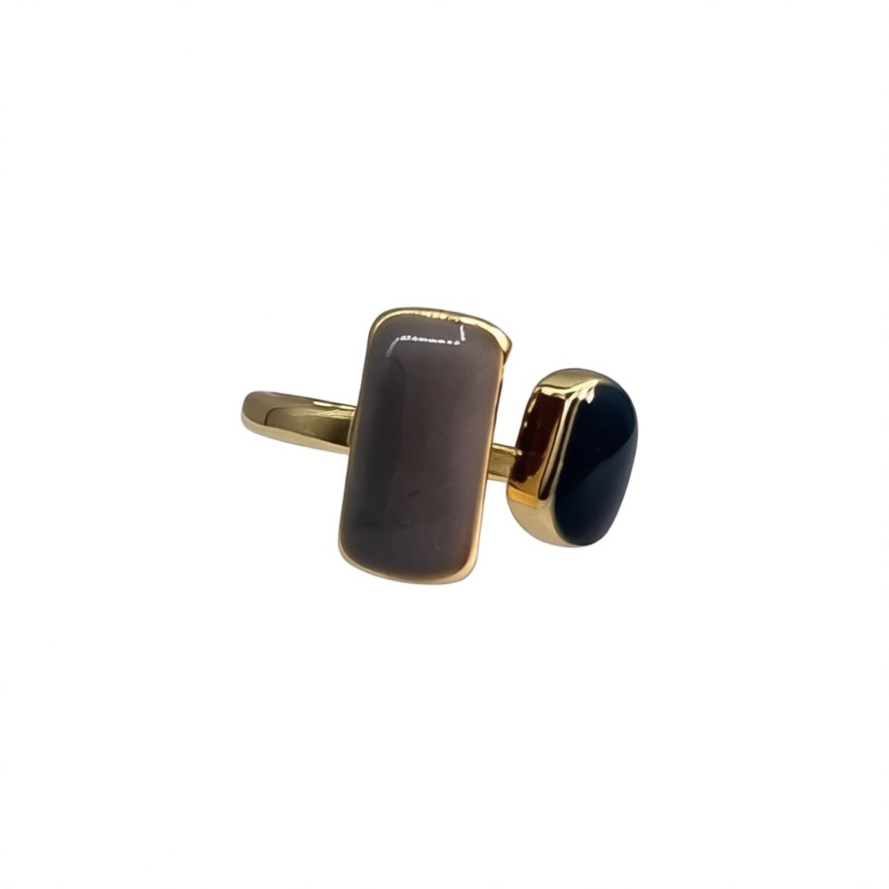 Vintage Rectangular Resin Open Statement Ring For Women,Gold-Toned Adjustable Expandable Ring