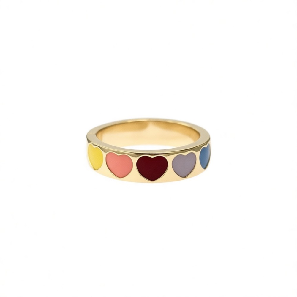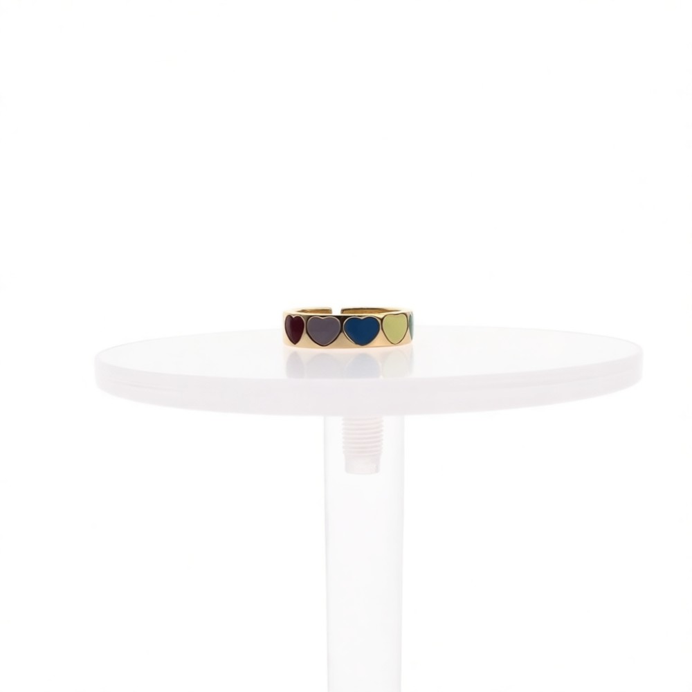 Vintage Colorful Heart Open Statement Ring For Women, Gold-Toned Adjustable Expandable Ring