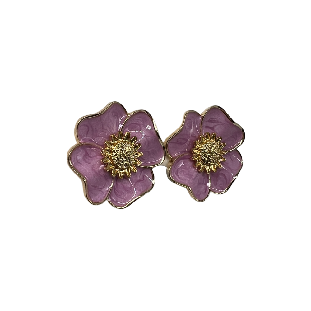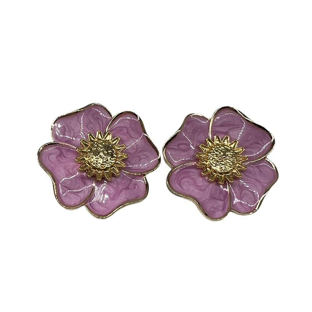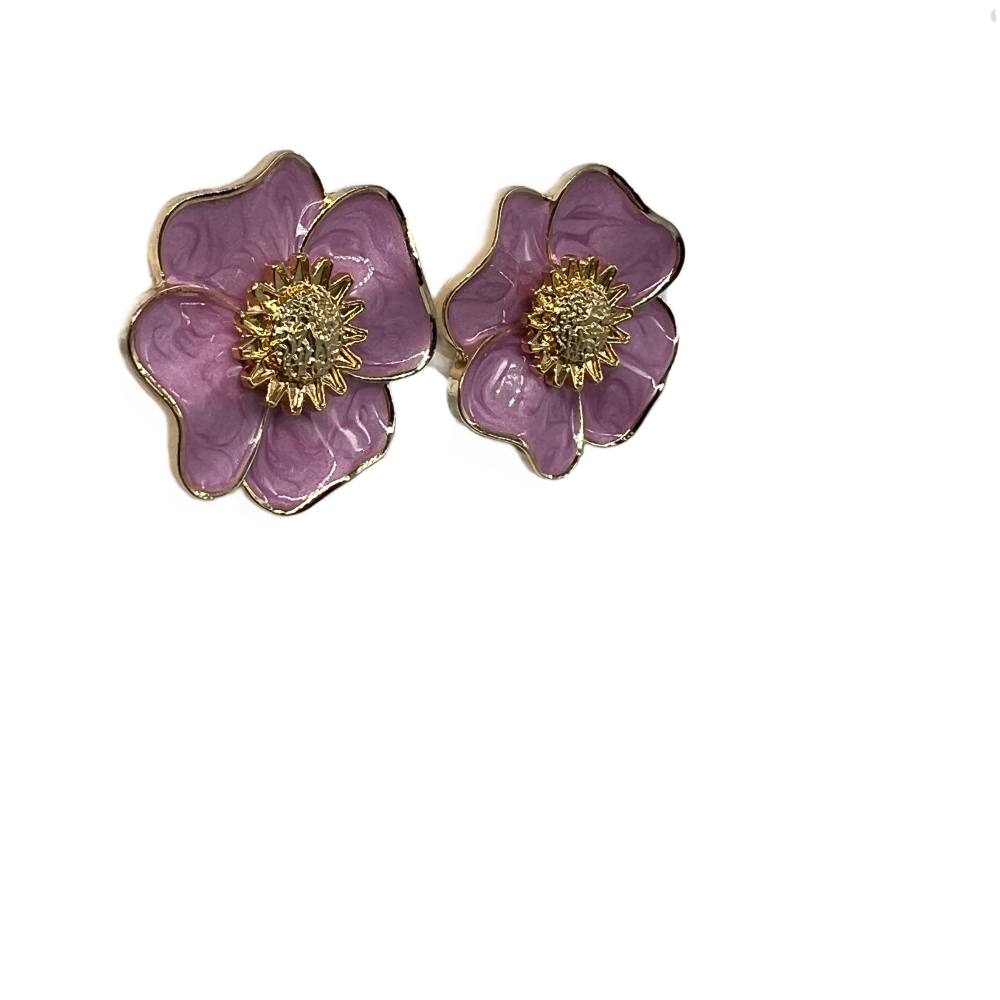 Vintage Pink Flower Stud Earrings For Women Gold Tone Dainty Statement Earrings