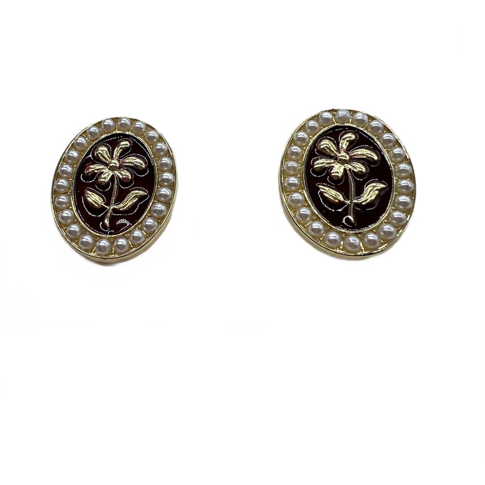 Vintage Oval Stud Earrings For Women Gold Tone Dainty Pearl Statement Earrings