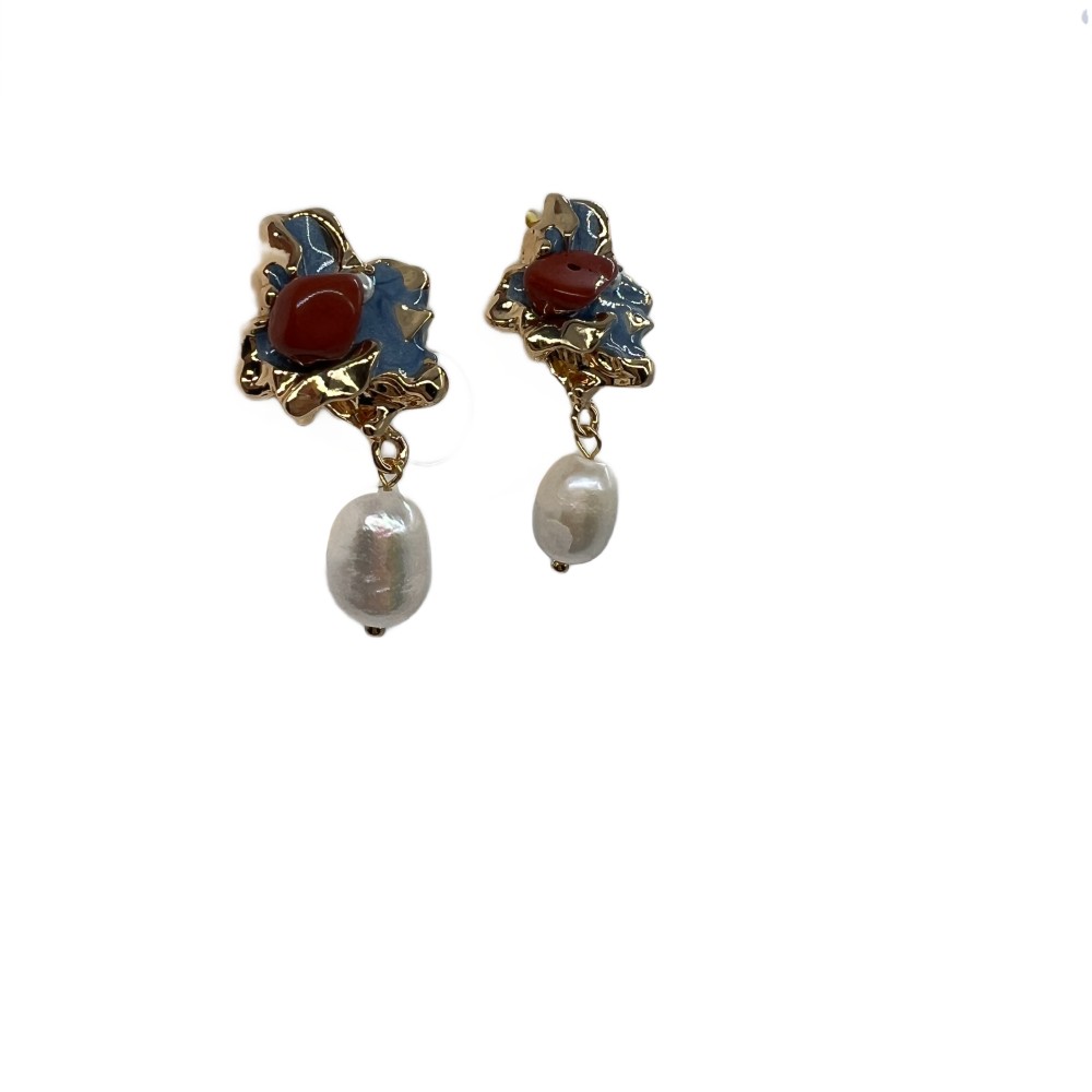 Vintage Enamel Drop Earrings For Women Gold Tone Dainty Pearl Statement Earrings
