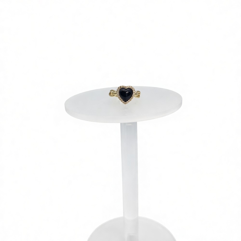 Vintage Black Agate Heart Open Statement Ring For Women,Gold-Toned Adjustable Expandable Ring