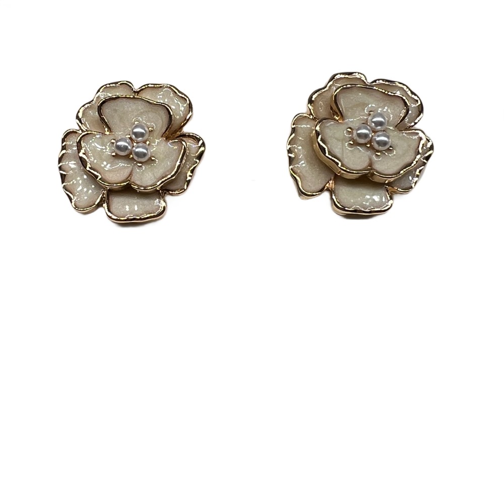 Elegant Camellia Stud Earrings For Women Gold Tone Dainty Statement Earrings
